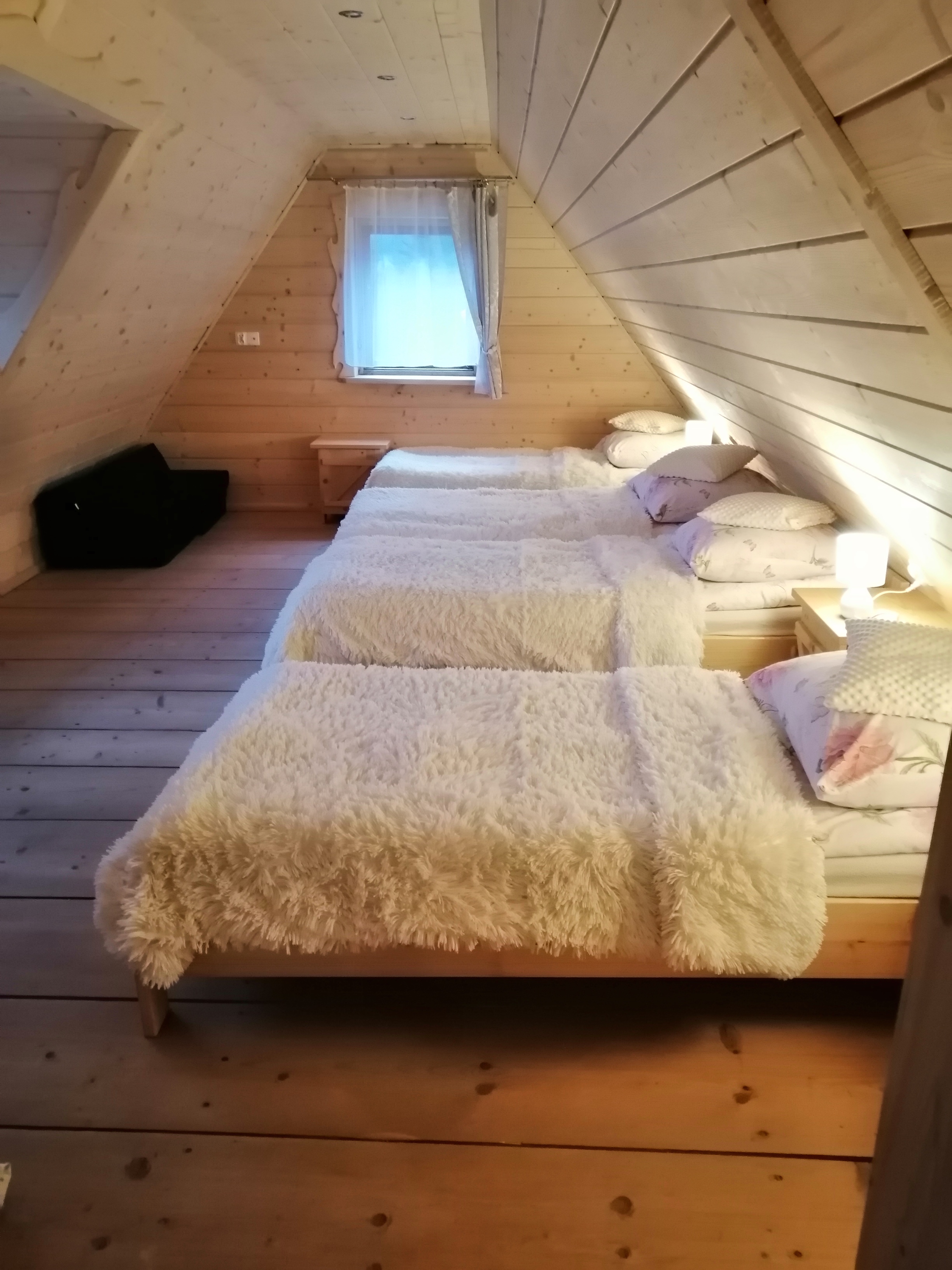 W naszym obiekcie oferujemy Państwu do 6 miejsc noclegowych. Cztery łóżka na poddaszu oraz salon z rozkładaną sofą dwuosobową.